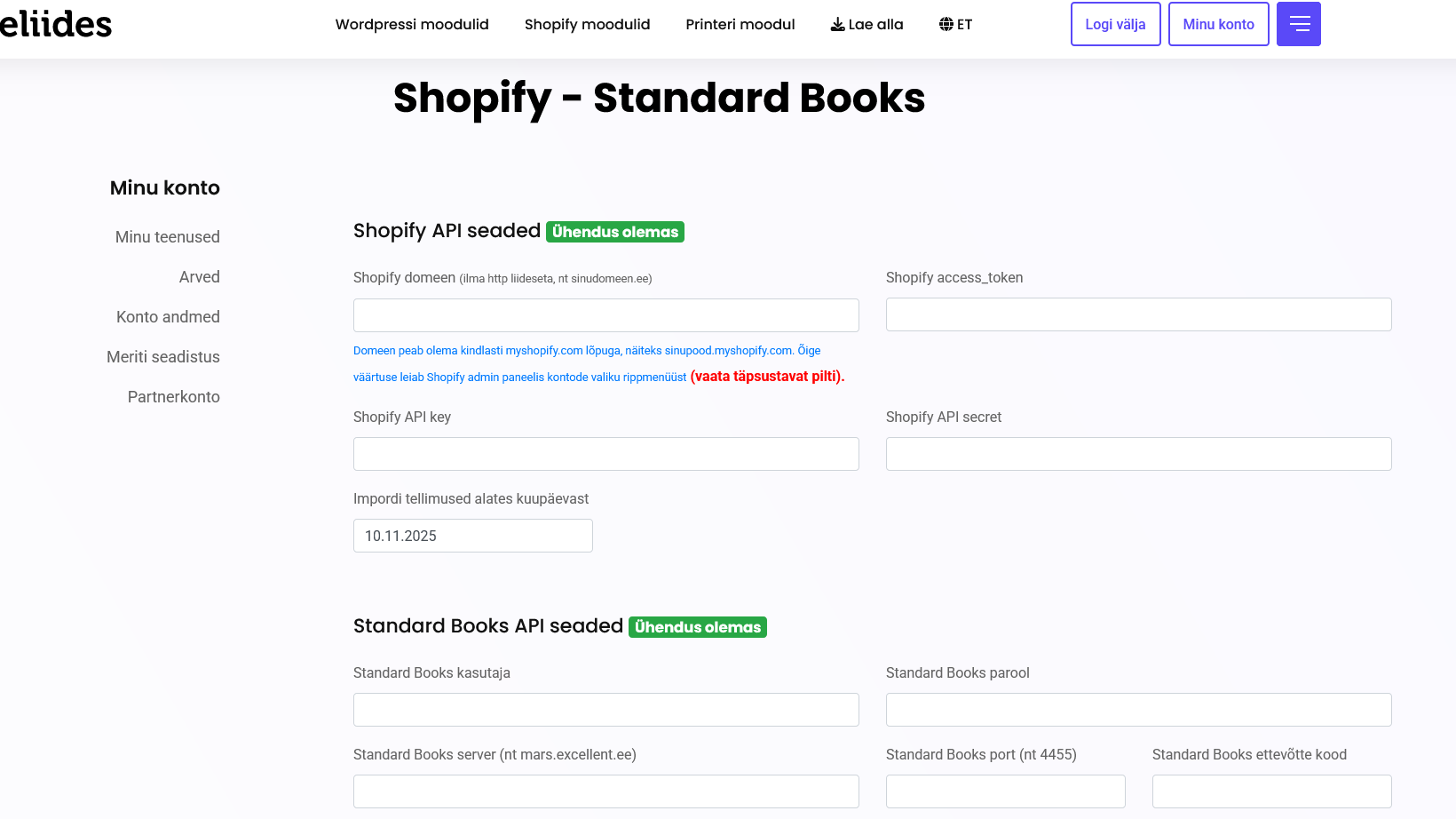 1. Registreeri e-liides.ee lehel Shopify - Standard Books litsents