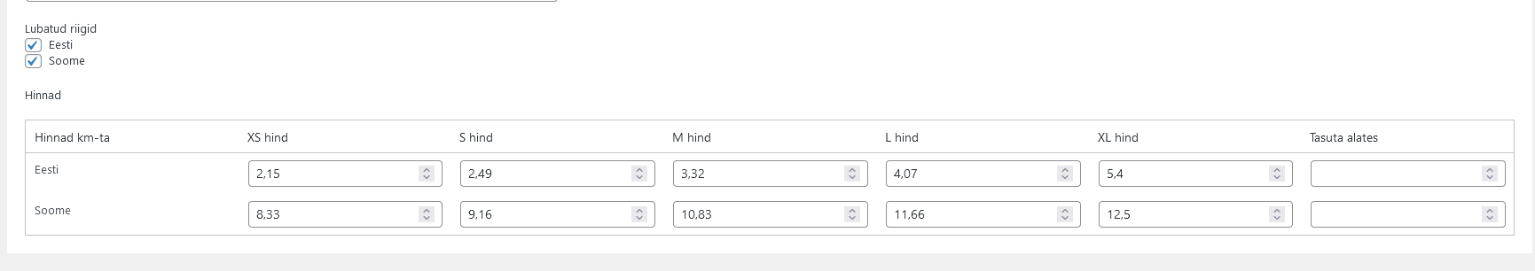 - Vajadusel saab määrata hinna, millest alates on tarne tasuta