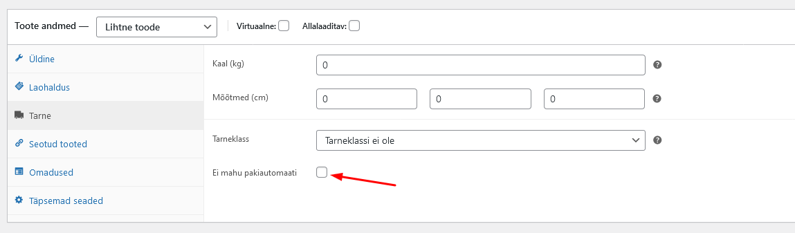 - Kui toode ei mahu pakiautomaati, siis on võimalik määrata linnuke Tarne - Ei mahu pakiautomaati