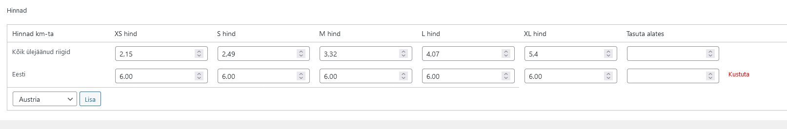 - Vajadusel saab määrata hinna, millest alates on tarne tasuta