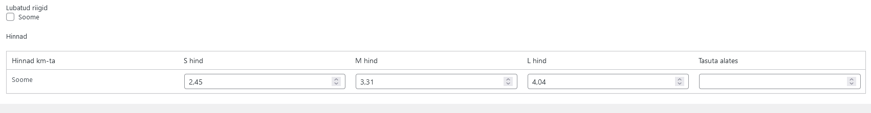 - Vajadusel saab määrata hinna, millest alates on tarne tasuta