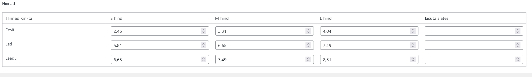 - Vajadusel saab määrata hinna, millest alates on tarne tasuta