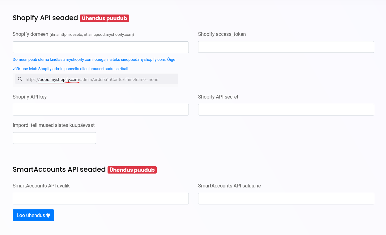 3. SmartAccounts ja Shopify ühenduse loomine